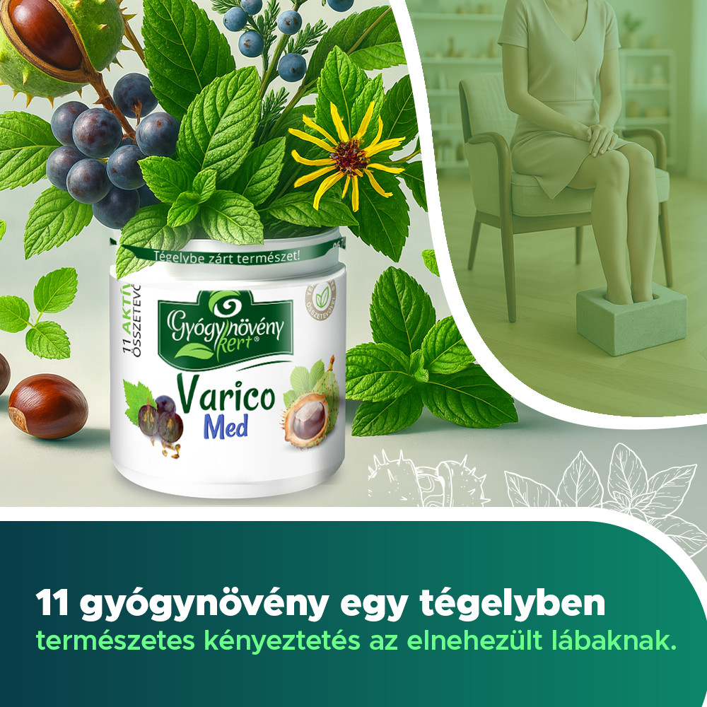 A régi idők bölcsessége most találkozik a modern bőrápolás tudományával. A Gyógynövénykert® Varico Med nem csupán a fáradt, érzékeny lábak komfortját támogatja, hanem bőrödet is kényezteti. Olyan gyógynövények ereje rejlik benne, melyekben már nagyanyáink is megbíztak – ma pedig korszerű, könnyen felszívódó krém formájában nyújt természetes ápolást, frissességet és könnyedséget a lábaidnak.